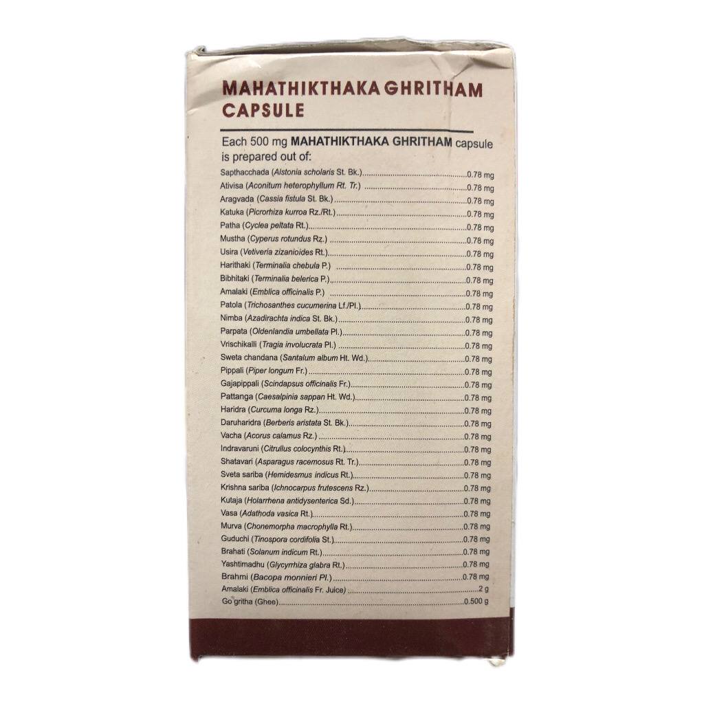 Махатиктака гритам (Mahathikthaka Ghritham Kerala Ayurveda), 100 капс