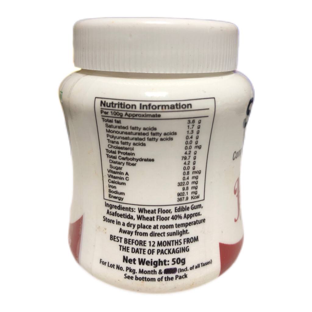 Пшеничная мука, съедобная камедь, асафетида, пшеничная мука (около 40%)